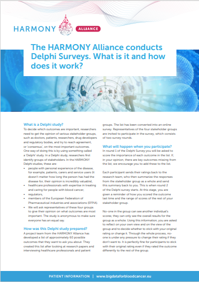 The HARMONY Alliance Delphi Survey Hackathon for Chronic Myeloid Leukemia (CML), Hodgkin’s Lymphoma (HL), Myeloproliferative Neoplasms (MPN) and Waldenström Macroglobulinaemia (WM) took place on 4 and 18 March 2022. Patients, clinicians, regulators and drug developers were invited to participate. The Delphi Surveys for CML, HL, MPN and WM are now closed. Consensus meetings took place in May 2022.