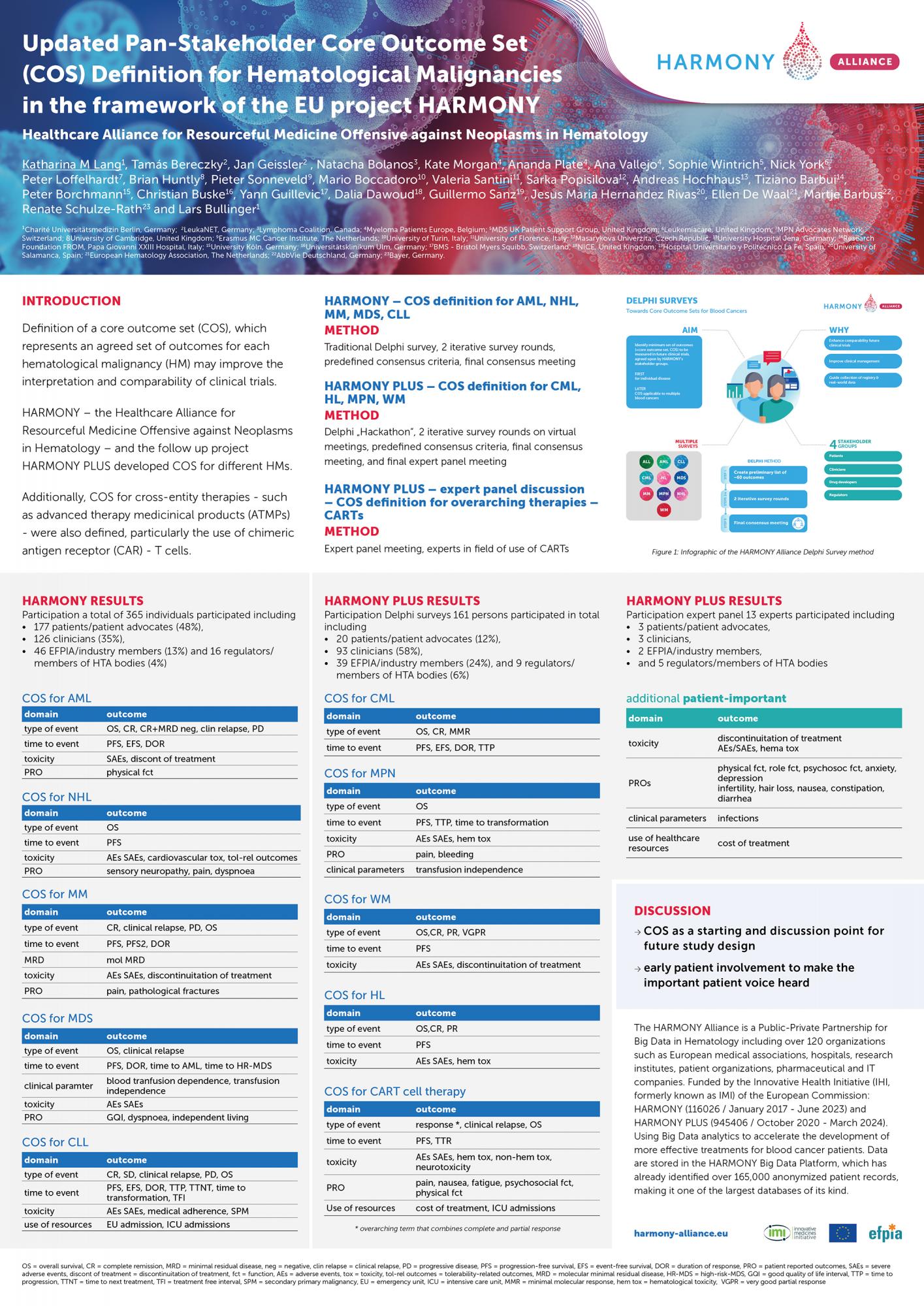 Updated Pan-Stakeholder Core Outcome Set (COS) Definition for Hematological Malignancies in the framework of the EU project - HARMONY - the Healthcare Alliance for Resourceful Medicine Offensive against Neoplasms in Hematology