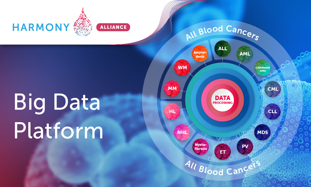 The HARMONY BigData Platform is a secure, innovative research data ecosystem providing a large data lake and state-of-the-art analytic services. The anonymous patient data sets at the Big Data Platform are collected securely following all legal and ethical requirements, harmonized and then analyzed. The data sets are provided by HARMONY Alliance Partners and Associated Members. The governed data lake at the Big Data Platform powered by advanced Big Data analytics, is created to speed up hematology research. It is a best-practice-based data platform where data submitted from various sources – once harmonized and anonymized – create a cohesive data lake ready for scientific research. Beyond a robust technical infrastructure, the Platform offers a secure and trusted research environment compliant with data processing regulations and ethical guidelines. So that researchers can focus on research instead of administrative issues of working on data. By the end of 2023, approximately 165,000 patient datasets had been identified, fortifying algorithms in their quest for new knowledge.