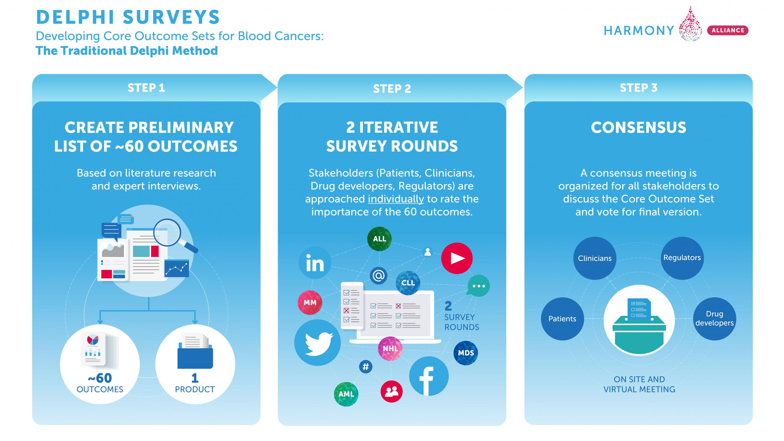 Dedicated research teams have been working on core outcome sets since the start of both the HARMONY and the HARMONY PLUS projects, in close collaboration with patients, clinicians, industry, and regulators/Health Technology Assessment bodies. The results can form the basis for future improvements in patient management.
