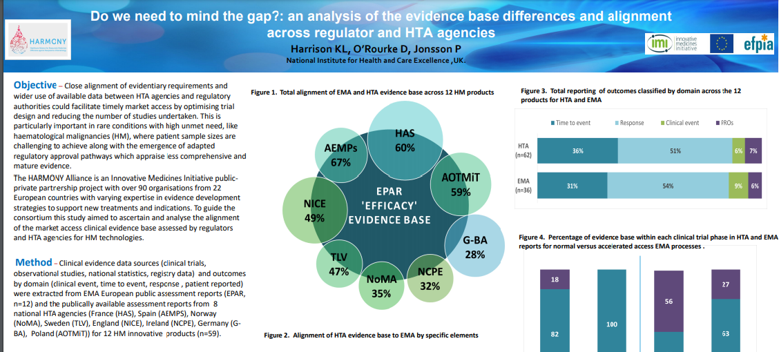 Katy Harrison, Scientific Advisor National Institute for Health and Care Excellence (NICE), UK and HARMONY Task Lead: ‘’It is great to be presenting our work at ISPOR - this is the leading European conference for health economics and outcomes research and attracts attendance from professionals in market access from HTA bodies and pharmaceutical companies to academics working on new methods for health economics. The work presented will hopefully highlight the need to include a wide range of factors beyond clinical and cost effectiveness for HMs and for robust clinical data within their submissions for reimbursement as most HTA agencies use this information in their decision making."