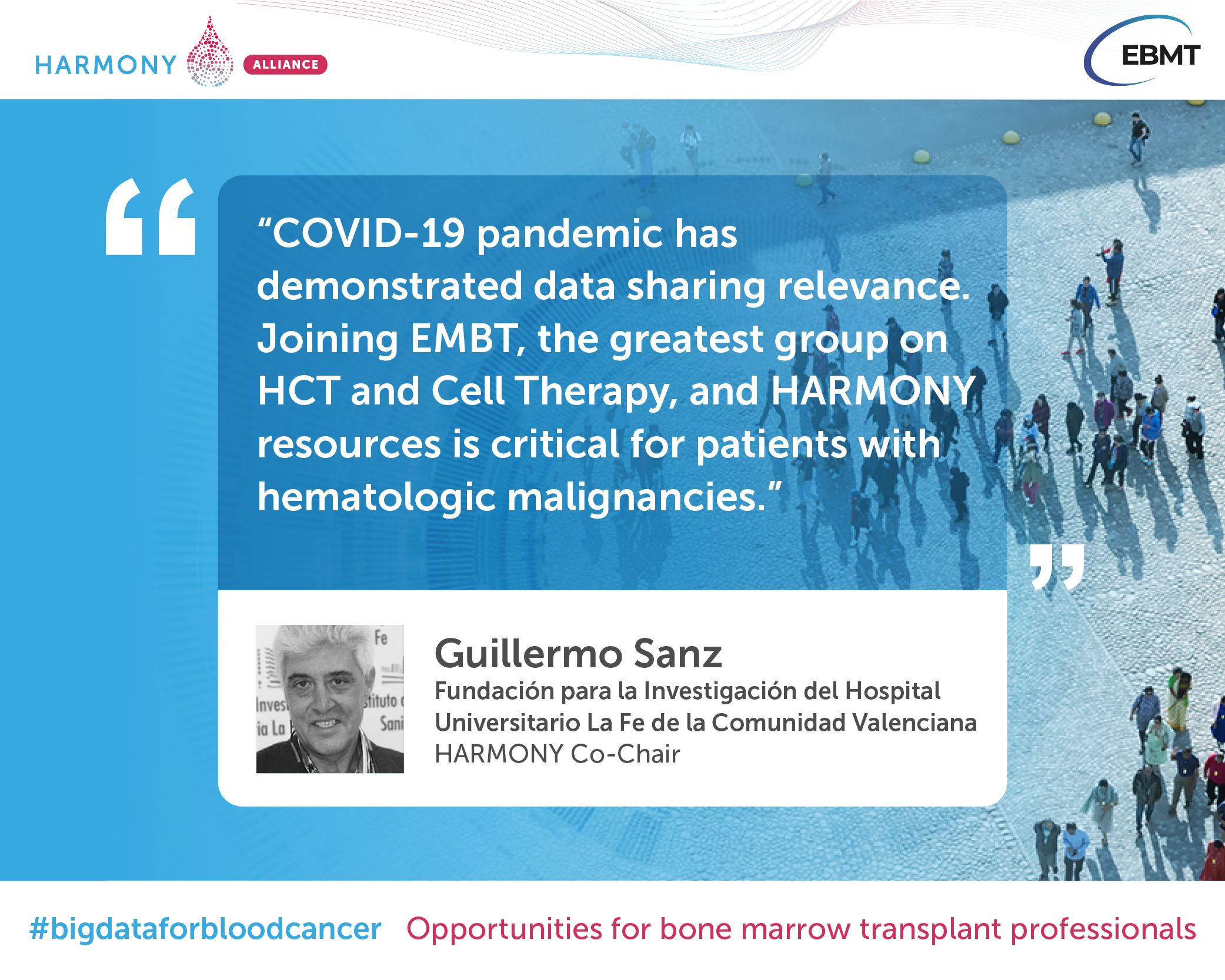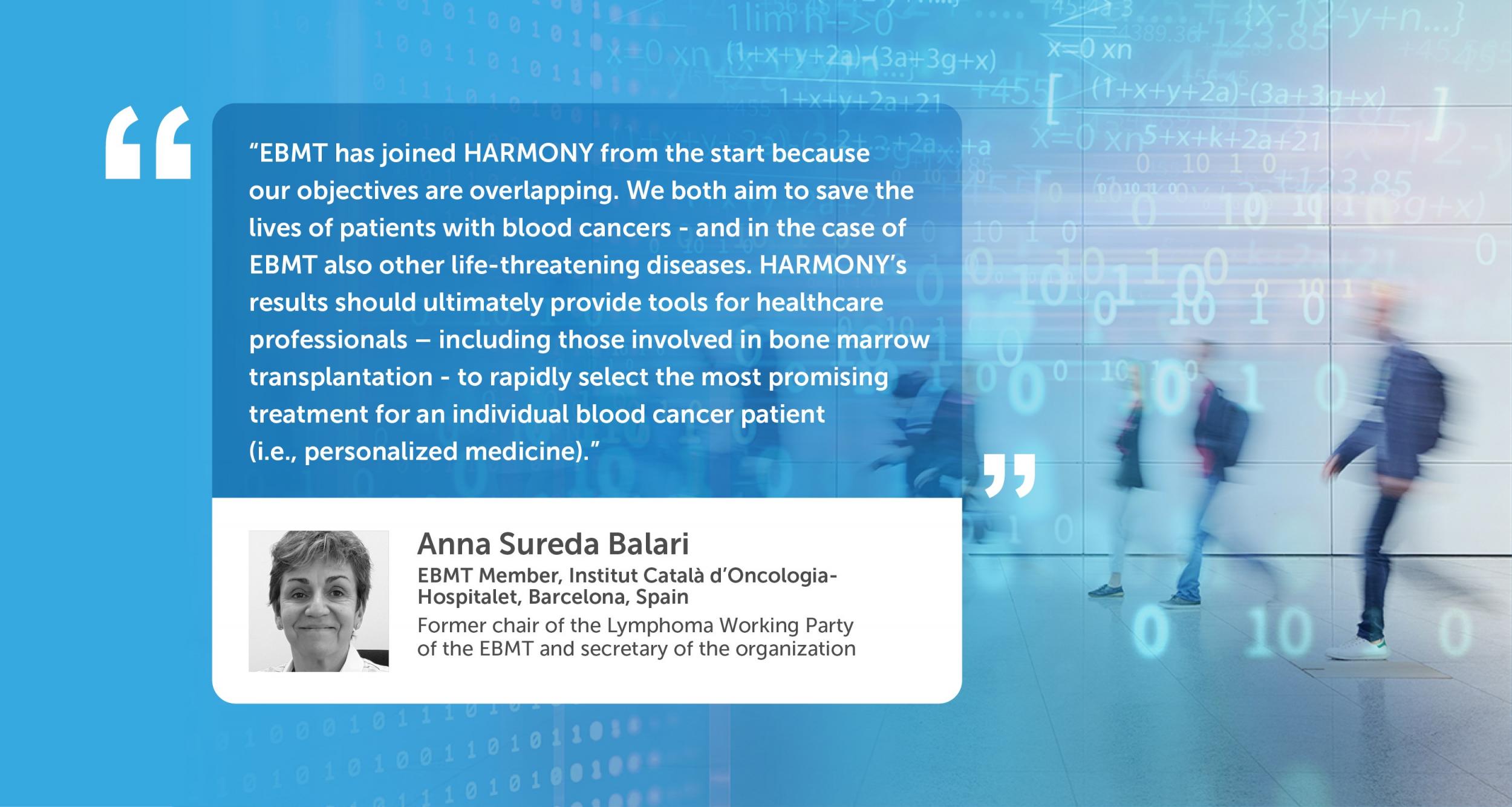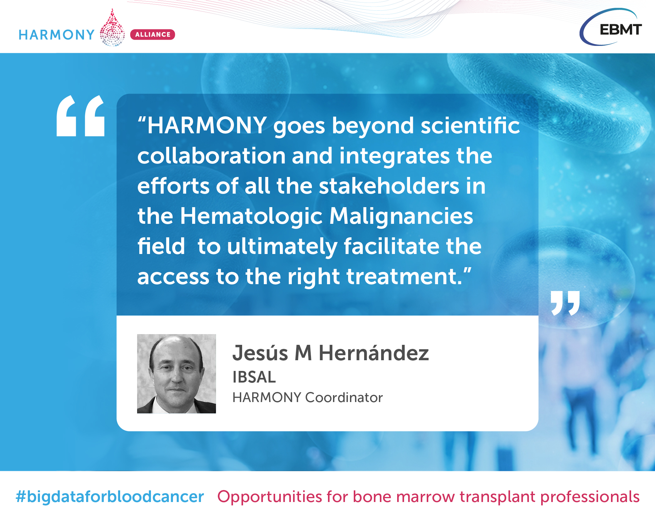The HARMONY Alliance is a Public-Private Partnership including over 100 organizations such as European medical associations, hospitals, research institutes, patient organizations, pharmaceutical and IT companies. HARMONY uses Big Data analytics to accelerate the development of more effective treatments for blood cancer patients. HARMONY would like to inform bone marrow transplant professionals about the opportunities to become involved. Click here to open our special factsheet > | Connect with us to talk more >