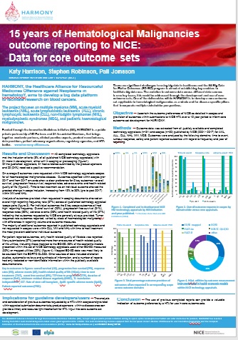 Katy Harisson of HARMONY Partner NICE presented a poster about 15 years of hematological malignancies outcome reporting to NICE: data for outcome sets.