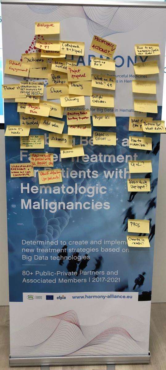 At 4 February 2019 representatives of HARMONY Patient Cluster together with HARMONY experts in research and datascience discussed the prospective outlook of Big Data in hematology for patients. In an interactive program attendees discussed the difference Big Data can make in blood cancer research and what it can mean for patients. In addition topics that will be discussed in the interactive set up are involvement of patient communities both in HARMONY projects and in related activities, as well as information needs.
