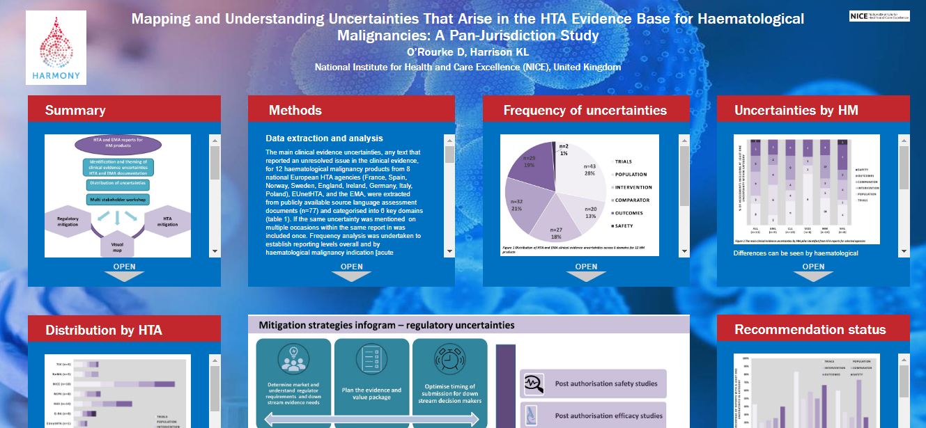 Katy Harrison, National Institute for Health and Care Excellence (NICE), United Kingdom: “We have developed the mind map as a unique visual representation of uncertainties identified for this selection of blood cancer treatments. Key clusters in the mind map highlight connections between individual uncertainties, with links to underlying causal mechanisms. The map, along with the HTA and regulatory mitigation infograms, can help researchers to recognize how and where uncertainties may arise and define appropriate mitigation strategies.”