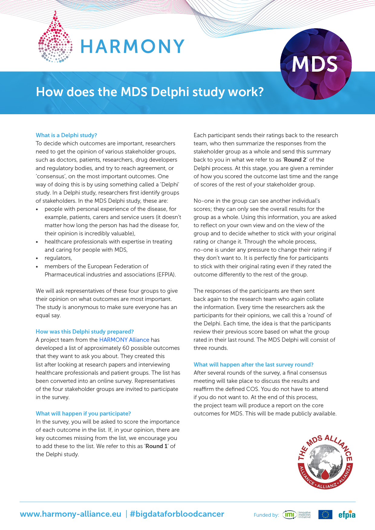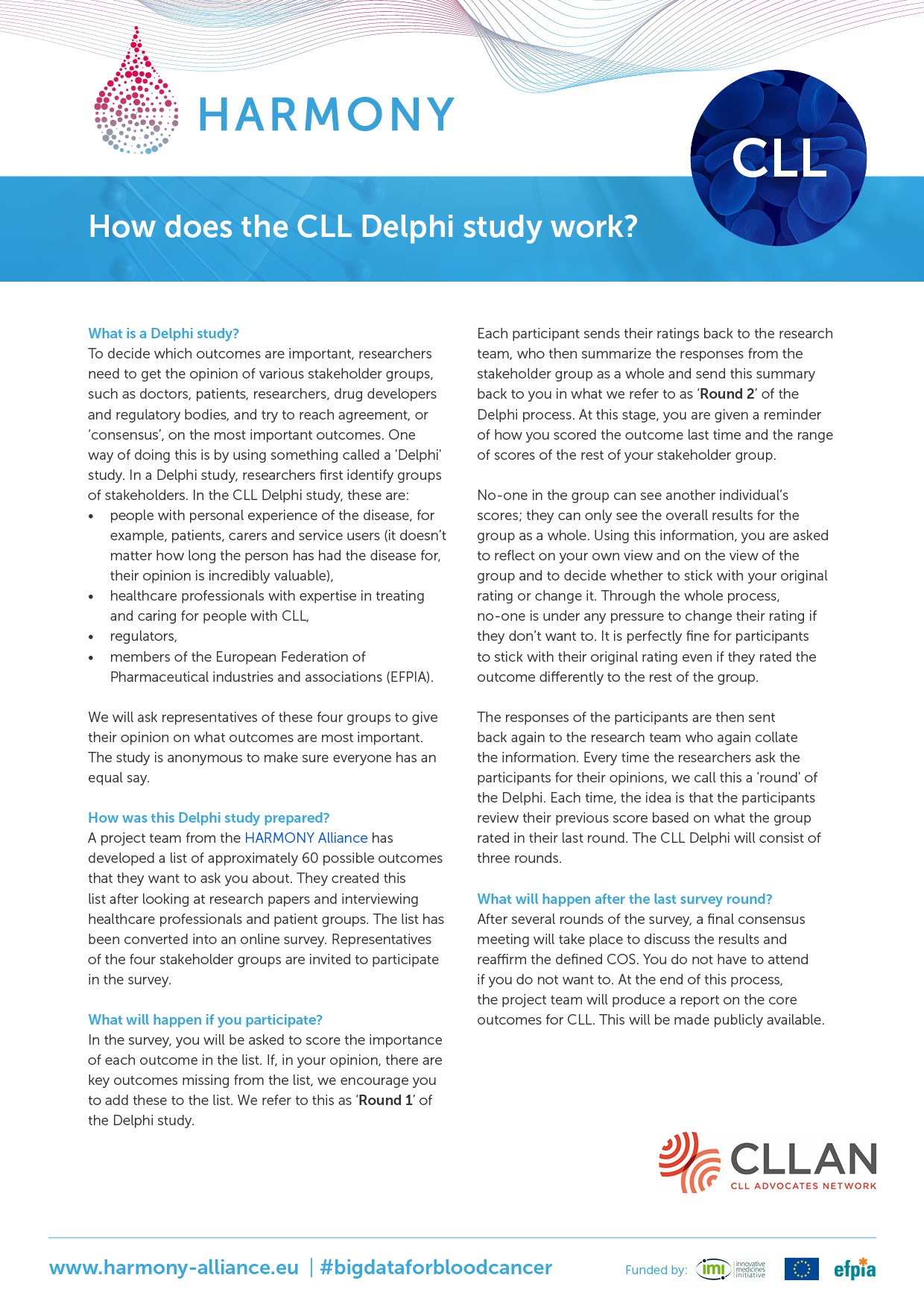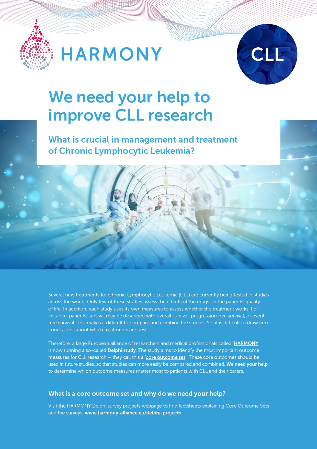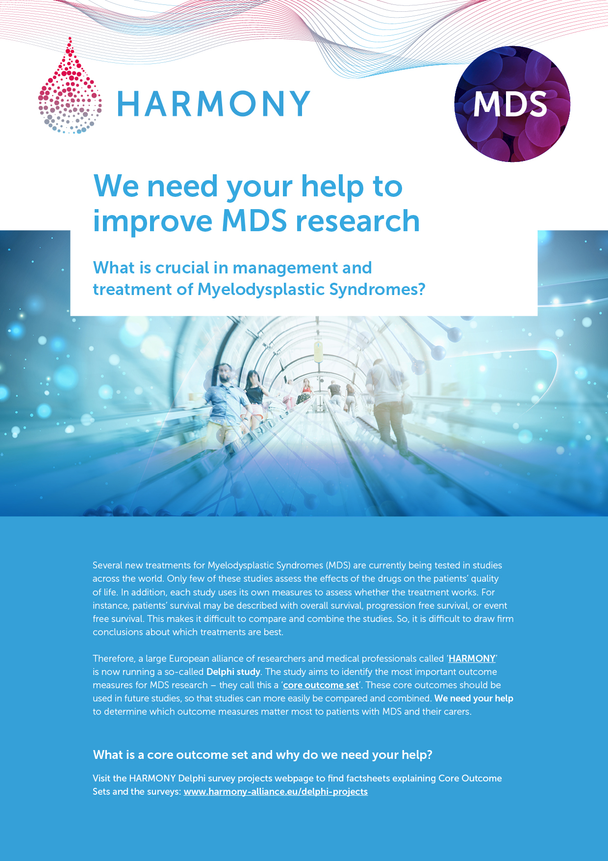 In close collaboration with the HARMONY Patient Cluster, special informative flyers have been developed to invite and inform patients to participate in the Delphi surveys. These flyers are available: